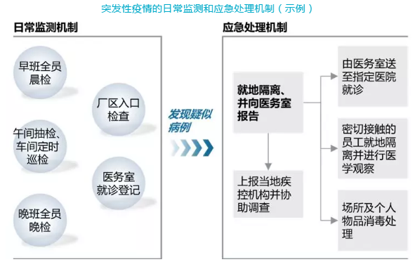 當(dāng)前化工企業(yè)的HSE管理體系重點(diǎn)關(guān)注源于工作或現(xiàn)場(chǎng)環(huán)境的工傷、職業(yè)病和安全事故的預(yù)防和處理,但對(duì)于來(lái)源于工作環(huán)境之外,通過員工之間接觸的傳染病的預(yù)防還有所不足,在不少化工企業(yè)的HSE管理體系中,傳染病的預(yù)防和處理流程規(guī)章尚未建立。我們建議,化工企業(yè)將控制傳染性疾病控制納入HSE管理體系,并建立疫情防控應(yīng)急預(yù)案。