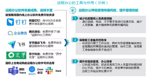 化工企業(yè)的遠(yuǎn)程管理和辦公能力有所不足,普遍反映在較少使用遠(yuǎn)程辦公工具或者不能以合適的方法通過遠(yuǎn)程辦公工具,無(wú)法對(duì)于現(xiàn)場(chǎng)生產(chǎn)和項(xiàng)目運(yùn)行進(jìn)行有效管理,造成在抗疫以及隔離期間、生產(chǎn)人員工作效率低、管理人員的管理有效性低的問題。因此,我們建議化工企業(yè)在疫情持續(xù)期間,熟悉掌握遠(yuǎn)程辦公信息化工具的使用,提升遠(yuǎn)程管理能力。